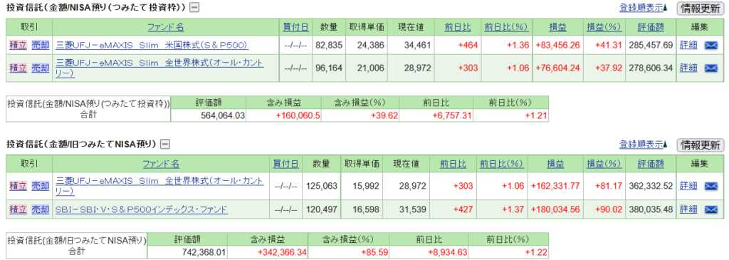 今月はちょっと更新をさぼっていたらいきなり日本の株価が過去の最高値更新という流れとなり、NISAのほうも影響を受けたのか我が家としての運用収益率が最高値更新していました。