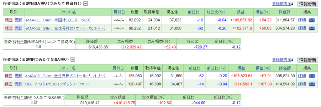 含み損益:新 212,029.42 + 旧 410,416.75 = 622,446.17 [円]