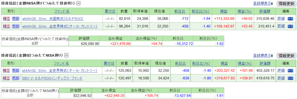 含み損益:新 221,476.66 + 旧 422,945.25 = 644,421.91 [円]
