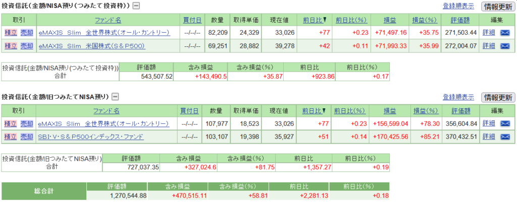 ・grrr   「 年間投資枠一挙全額投資 」: 含み損益 +684,951 [円] ・ +85.15 [%]