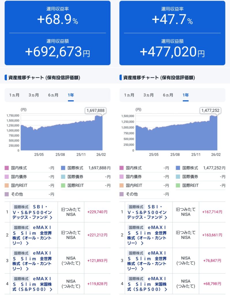 ・grrr 「 年間投資枠一挙全額投資 」: 含み損益 +692,672 [円] ・ +68.94 [%]